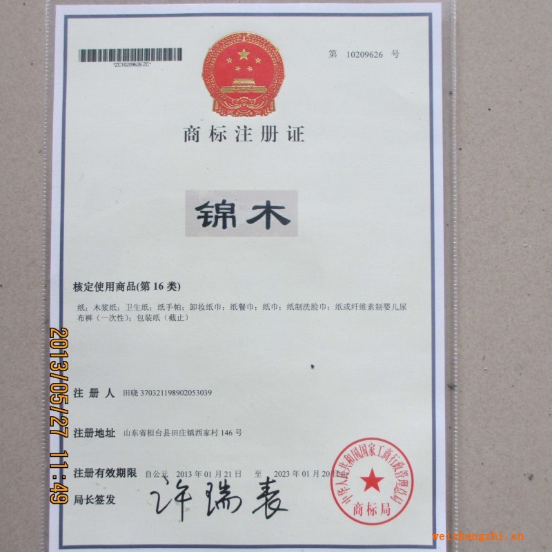 榮譽(yù)資質(zhì) 錦木注冊商標(biāo)