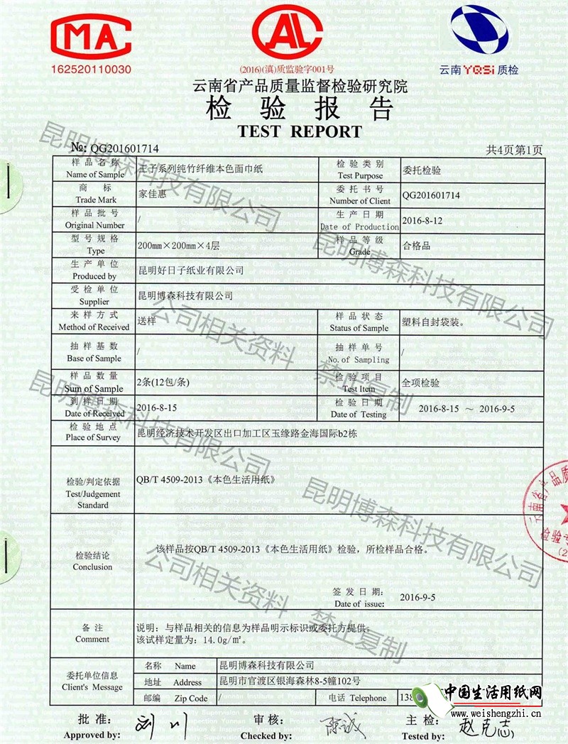 王子純竹纖維本色生活手帕紙質檢報告,按照標準項目,所有指標全檢,并全部合格!