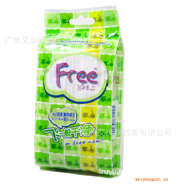 批發(fā)FREE飛綠茶薄荷衛(wèi)生濕紙巾(獨立包裝)肌膚清潔Y02