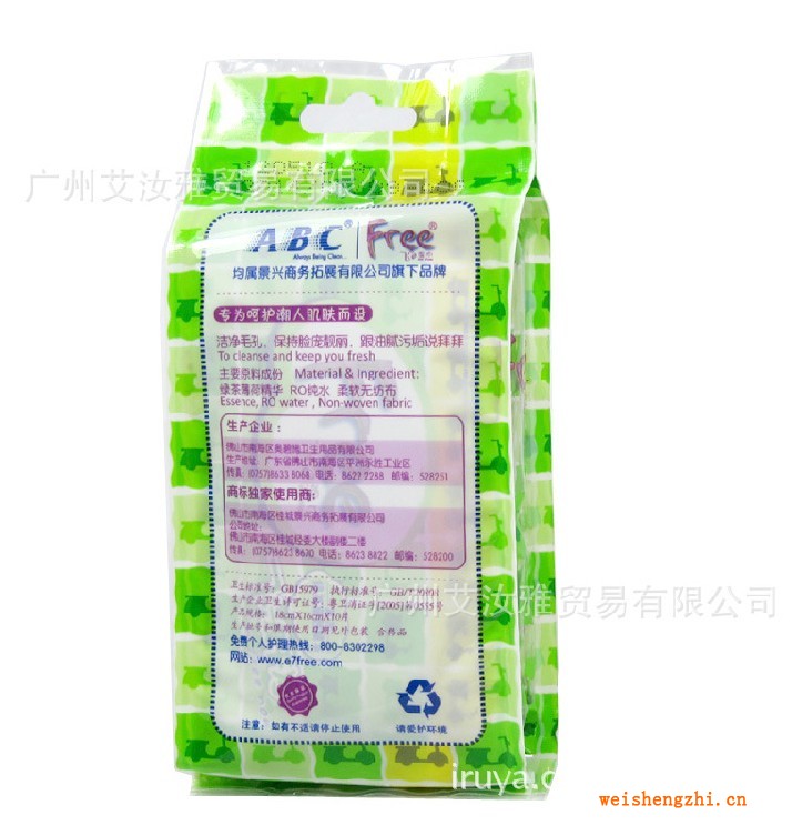 » 批發(fā)FREE飛綠茶薄荷衛(wèi)生濕紙巾(獨立包裝)肌膚清潔Y02