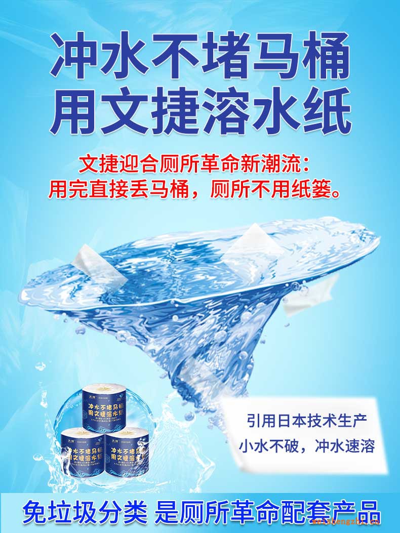 » 江蘇文捷紙溶水衛生紙溶水紙可沖水卷紙卷筒紙廁紙巾4層
