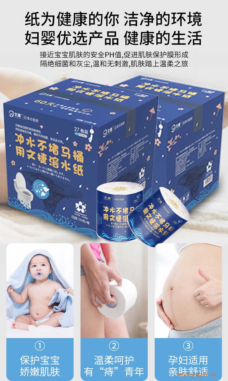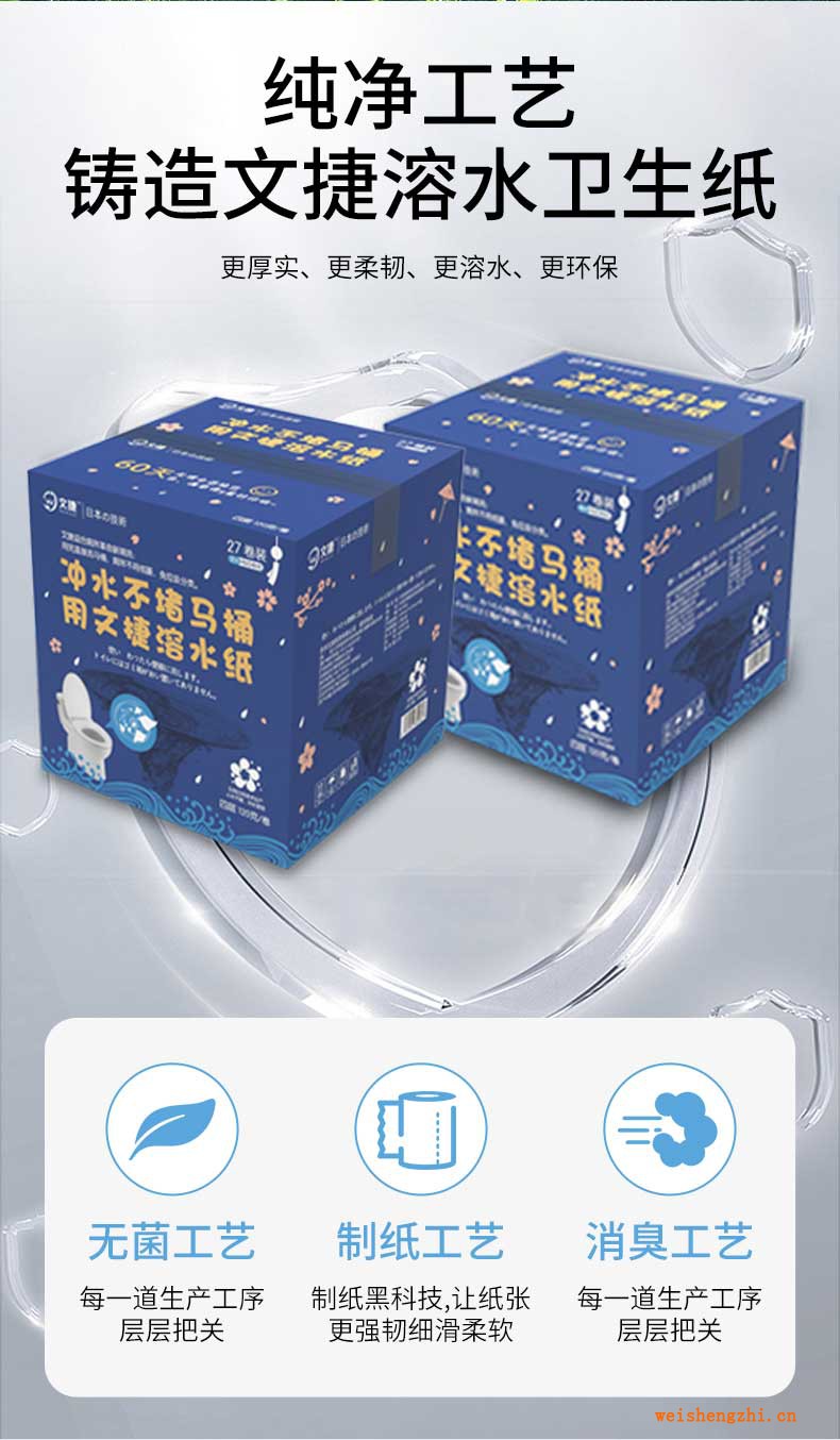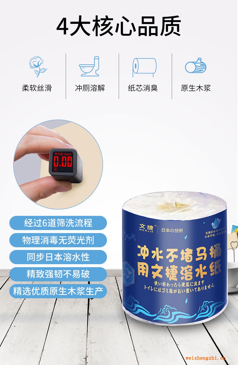 江蘇文捷紙溶水衛生紙溶水紙可沖水卷紙卷筒紙廁紙巾4層