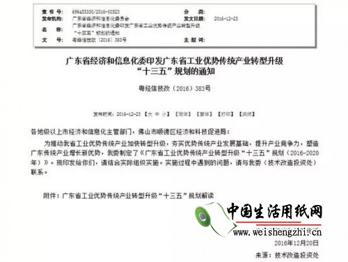 解讀:造紙行業產能過剩、行業集中度不高已經成為行業共識,"十二五"期間廣東省造紙行業已淘汰了176.14萬噸的落后產能。在“十三五”期間,設置了9個任務:一是著力供給側結構性改革;二是引導企業創新驅動;三是推動產業技術創新;四是促進工業化和信息化融合發展;五是推動生產性服務業發展;六是持續深入推進產業轉移;七是引導綠色低碳發展;八是培育發展大型骨干企業;九是扶持發展小微企業。推動實施創新驅動發展戰略,加快轉型升級。