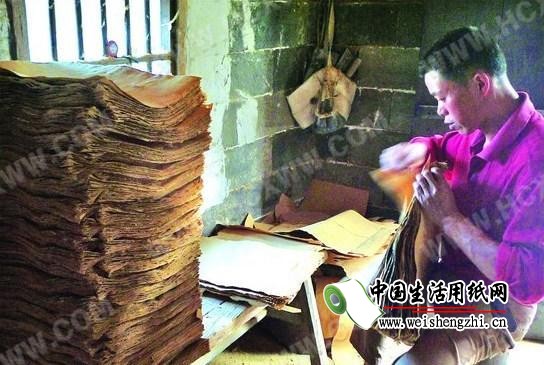 作為村上曾經(jīng)的舀紙大戶,嚴(yán)賢華已不再制作舀紙,而是轉(zhuǎn)向務(wù)農(nóng)。談起當(dāng)年的活路,他一片感嘆。在他家里,仍能找到當(dāng)年制作的舀紙,上面覆滿了揚(yáng)塵,但干燥、綿實(shí),依然能感受到當(dāng)年其精細(xì)的工藝。