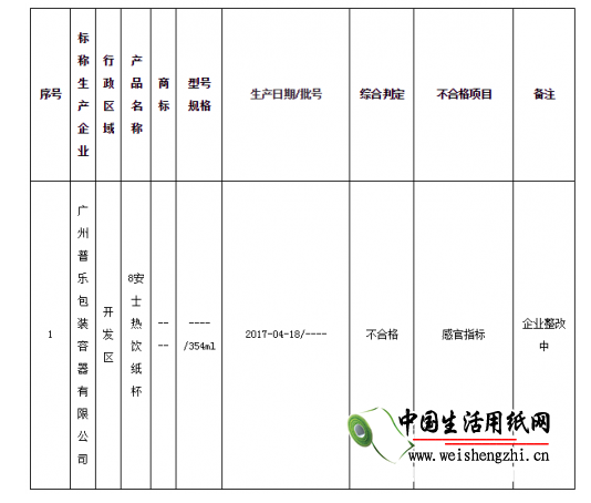 廣州市質(zhì)監(jiān)局:1批次紙杯產(chǎn)品不合格
