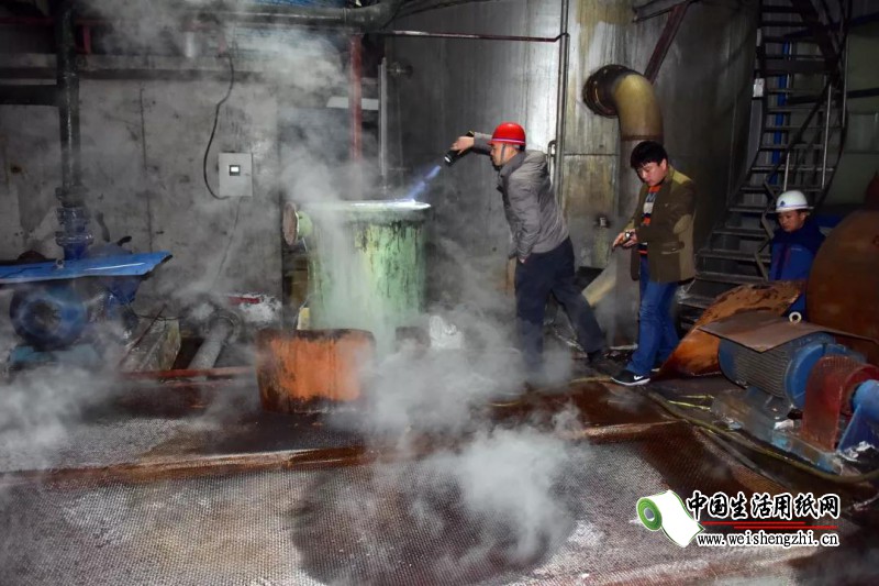 2017年2月19日晚,環境保護部2017年第一季度空氣質量專項督查第13督查組督查人員在企業生產車間檢查。攝影/章軻