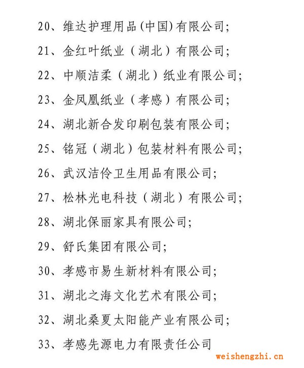 據昨日消息:孝南區當日發布通知,公布了第一批33家復工復產企業名單,包括了維達、金紅葉、中順潔柔以及金鳳凰紙業四家造紙企業。