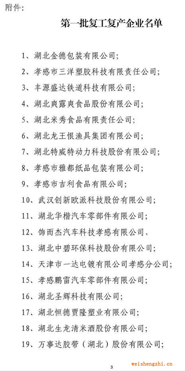 孝南首批復工復產企業名單包含了造紙企業維達、金紅葉、中順潔柔和金鳳凰紙業。
