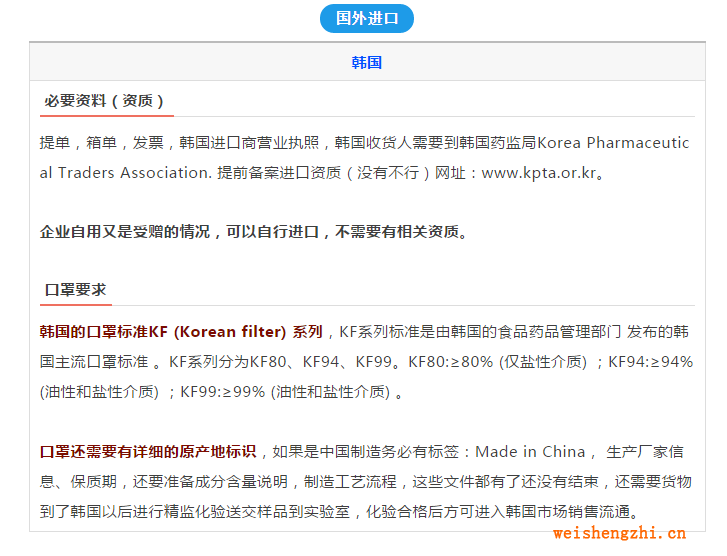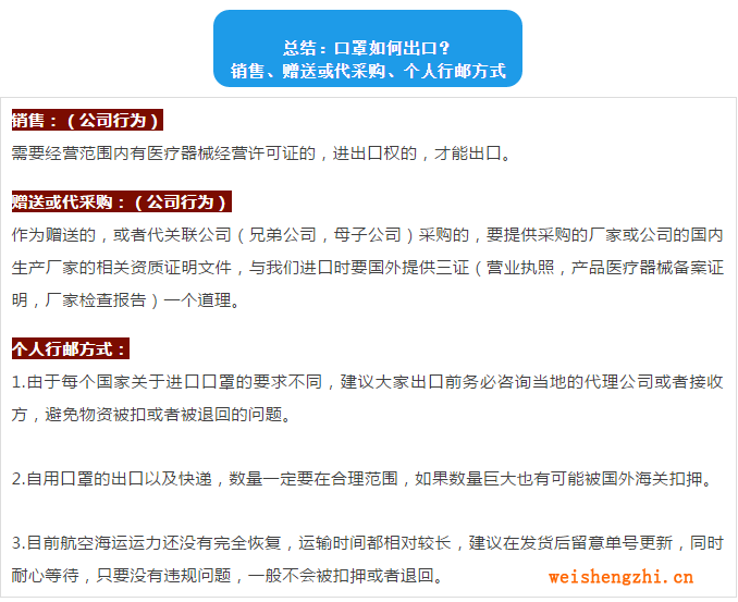 3月5日,美國貿(mào)易代表辦公室網(wǎng)站更新,對27家美國企業(yè)總計(jì)100多項(xiàng)進(jìn)口中國的醫(yī)療相關(guān)產(chǎn)品,進(jìn)行了關(guān)稅豁免。3月9日,中國駐韓國大使館新聞發(fā)言人表示,為支持韓國政府和人民抗擊新冠肺炎疫情,幫助韓方解決口罩供給問題,中方將于3月10日起向韓國出口口罩,首批500萬只,包括普通醫(yī)用口罩和N95口罩。今后中方還將繼續(xù)向韓國出口口罩。上述決定已通過外交渠道通報了韓國政府。發(fā)言人說,這是中國政府克服自身困難作出的決定,體現(xiàn)了中韓守望相助、同舟共濟(jì)的鄰里情、朋友義。中方愿同韓方,加強(qiáng)物資互助,分享信息經(jīng)驗(yàn),開展聯(lián)防聯(lián)控合作,爭取早日共同戰(zhàn)勝疫情。此前,中國政府已決定向韓國援助110萬只口罩和1萬套醫(yī)用防護(hù)服。以下針對口罩等疫情物資的進(jìn)出口問題,收集和整理了一些要求和規(guī)范,希望能幫助到疫情物資進(jìn)出口企業(yè)。(僅供參考)