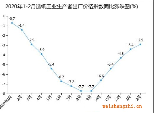 2020年1-2月造紙工業生產者出廠價格指數同比漲跌圖(%)附表: