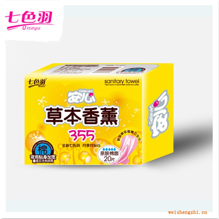 天津衛生巾生產廠家|整箱批發|七色羽安心草本香薰355衛生巾