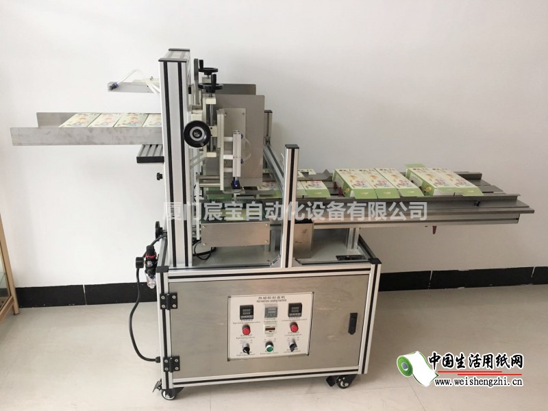 3、根據熱熔膠來設定封盒機加熱溫度,待膠完全熔化;