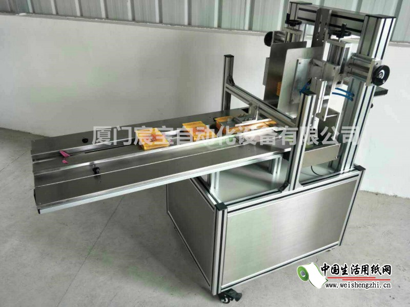 2、人工裝好物料放至輸送帶,機械自動上膠、封口,大小規格可調節;