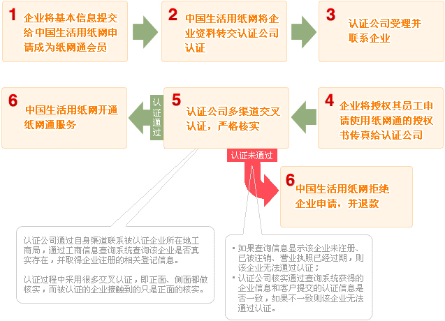 務。 誠信認證: 通過第三方誠信認證 機構,對申請享受紙網通服務的會員進 行誠信認證,核實認證企業身份。